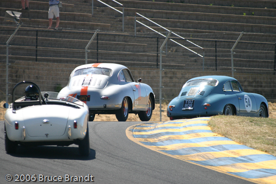 #54 1959 Porsche Carrera GT, #71 1957 Porsche 356A, 1956 AC Bristol